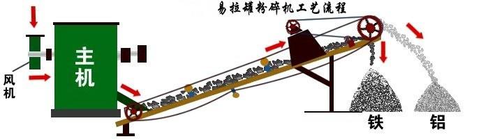 金屬粉碎機(jī)用電機(jī)帶動(dòng)風(fēng)輪擠壓的基本原理,其核心原理就是利用錘子擊打物料,上料口帶有過濾式傳送帶,在高速大扭矩電機(jī)的驅(qū)動(dòng)下,主機(jī)轉(zhuǎn)子上的錘頭輪流擊打進(jìn)入容腔內(nèi)的待破碎物,通過襯板與錘頭之間形成的空間,將待破碎物撕裂成合乎規(guī)格的破碎物。金屬破碎機(jī)根據(jù)破碎機(jī)的工作狀況,可成干式系統(tǒng)、濕式系統(tǒng)和半濕式系統(tǒng)。破碎物料經(jīng)過高強(qiáng)磁選機(jī)分揀系統(tǒng),把金屬和非金屬分離開,另外整個(gè)系統(tǒng)裝有除塵裝置,將生產(chǎn)過程中產(chǎn)生的粉塵污染危害降至低。