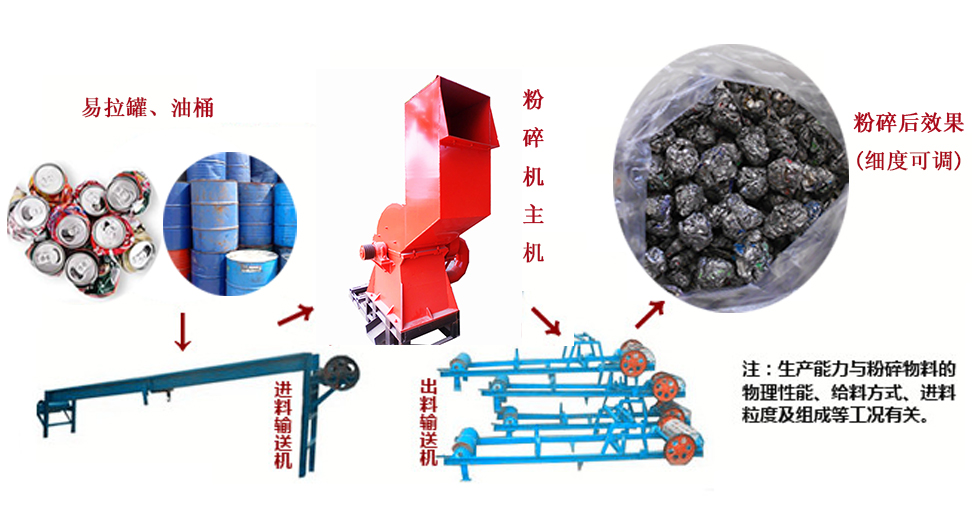 易拉罐粉碎機(jī)用電機(jī)帶動風(fēng)輪擠壓的基本原理,其核心原理就是利用錘子擊打物料,上料口帶有過濾式傳送帶,在高速大扭矩電機(jī)的驅(qū)動下,主機(jī)轉(zhuǎn)子上的錘頭輪流擊打進(jìn)入容腔內(nèi)的待破碎物,通過襯板與錘頭之間形成的空間,將待破碎物撕裂成合乎規(guī)格的破碎物。金屬破碎機(jī)根據(jù)破碎機(jī)的工作狀況,可成干式系統(tǒng)、濕式系統(tǒng)和半濕式系統(tǒng)。破碎物料經(jīng)過高強(qiáng)磁選機(jī)分揀系統(tǒng),把金屬和非金屬分離開,另外整個系統(tǒng)裝有除塵裝置,將生產(chǎn)過程中產(chǎn)生的粉塵污染危害降至低。
