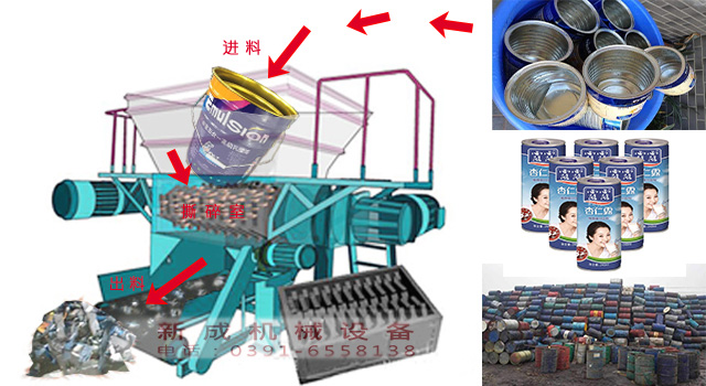 金屬撕碎機主要由撕碎刀片組、承載箱體、箱體支架、進料系統、動力系統,電器控制系統組成的機器。主要用于撕碎有一定強度的輕薄金屬,增加其堆積密度以便于運輸,再利用。撕碎對象如金屬桶、冰箱、汽車、廢舊鋼材、鋼制家具等。