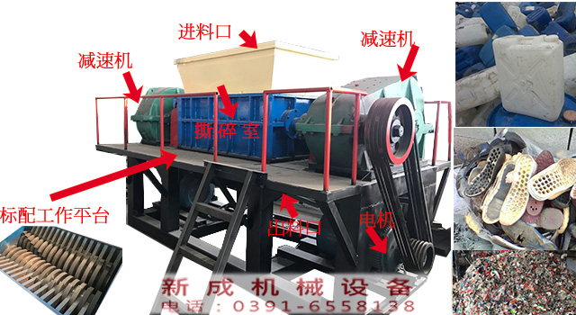 塑料撕碎機(jī)用于撕碎高密度聚乙烯HDPE塑料產(chǎn)品和物料,利于塑料再利用及再生塑料顆粒。例如:礦泉水瓶、PET瓶、機(jī)油瓶、汽油瓶、塑料桶等。