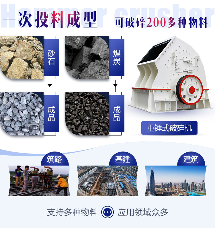 錘式破碎機(jī)可實(shí)現(xiàn)石料的一次加工成型(直接將粒度為600-1200毫米的物料破碎至40毫米以下),無需二次破碎,耗能低,投資少。成品物料還可根據(jù)需求進(jìn)行調(diào)整,粗、中、細(xì)各種規(guī)格均可,適用于抗壓強(qiáng)度低于200MPa中等硬度物料。